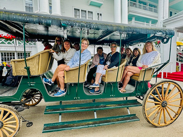 In 2024, our Women’s Travel Club embarked on a summer escape to The Grand Hotel on Michigan’s Mackinac Island. The group was treated to a horse-drawn carriage tour to kick off a weekend including a sunset boat ride, horseback riding, afternoon tea, delicious dinners and bike rides with scenic Lake Huron views. Many spent time relaxing or reading on the hotel’s lake view rocking chairs of the longest front porch in the USA!